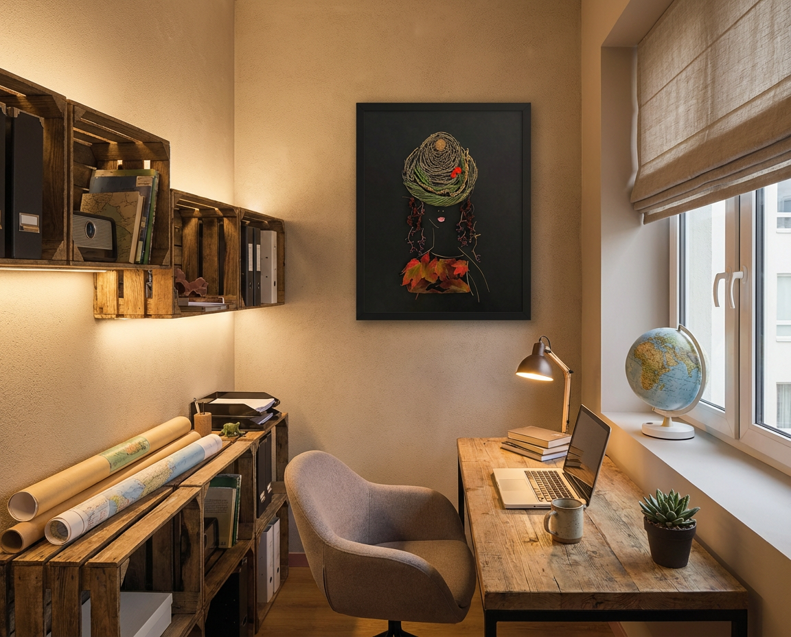 This piece is ideal for a bedroom accent wall, hallway gallery wall, or a quiet reading nook where nature-led art can add depth and warmth. Autumn Lady invites a sense of seasonal stillness and feminine strength into your space.