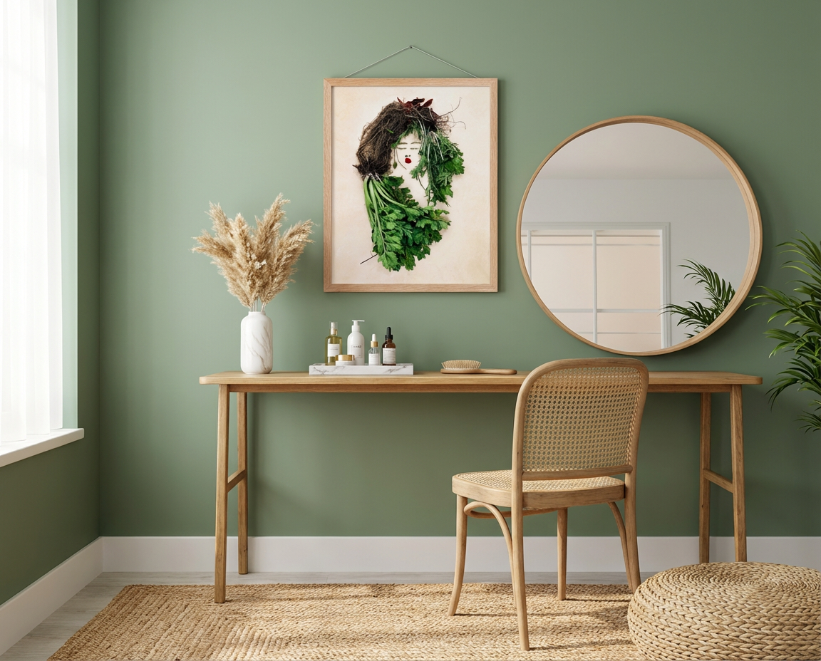 Inspired by organic forms and subtle strength, this nature-inspired wall art harmonizes gentle greenery with a serene composition. It brings a grounded sense of calm to your home while still making a striking visual impression. The balanced botanical elements enhance the feminine silhouette, evoking both refined beauty and rooted presence.